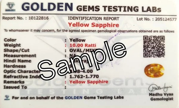 Yellow Sapphire is a cold gem. It improves vision, gives life security, protects one from poverty, and removes adversity, misfortune, and melancholy.