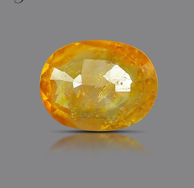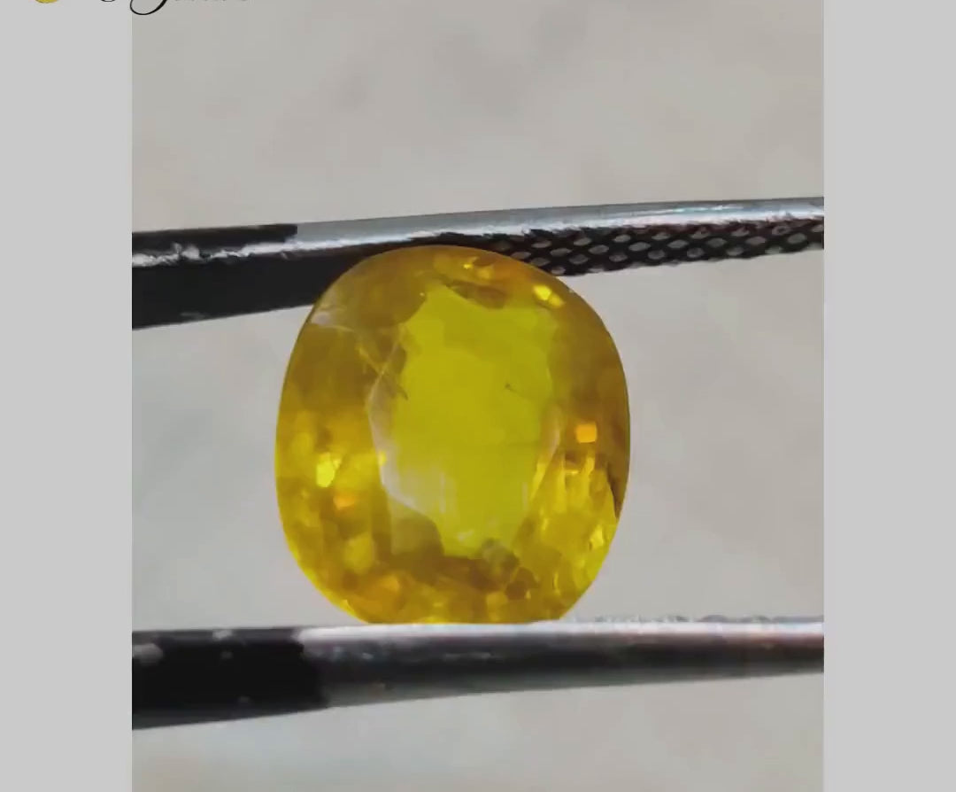 Yellow Sapphire is a cold gem. It improves vision, gives life security, protects one from poverty, and removes adversity, misfortune, and melancholy.