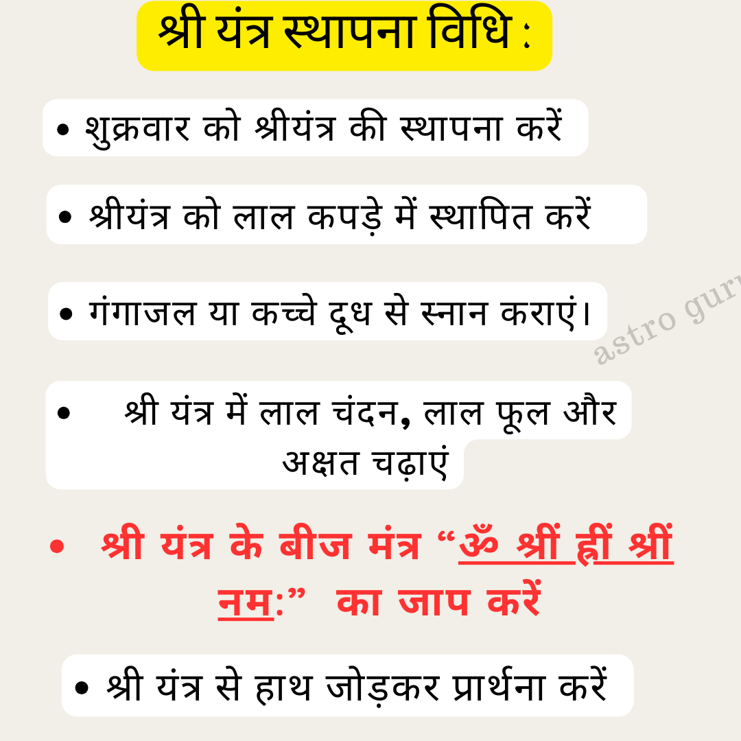 - рд╢реНрд░реАрдпрдВрддреНрд░ рдХреЛ рдордВрджрд┐рд░ рдпрд╛ рддрд┐рдЬреЛрд░реА рдореЗрдВ рд░рдЦрдХрд░ рдкреНрд░рддрд┐рджрд┐рди рдкреВрдЬрд╛ рдХрд░реЗрдВред